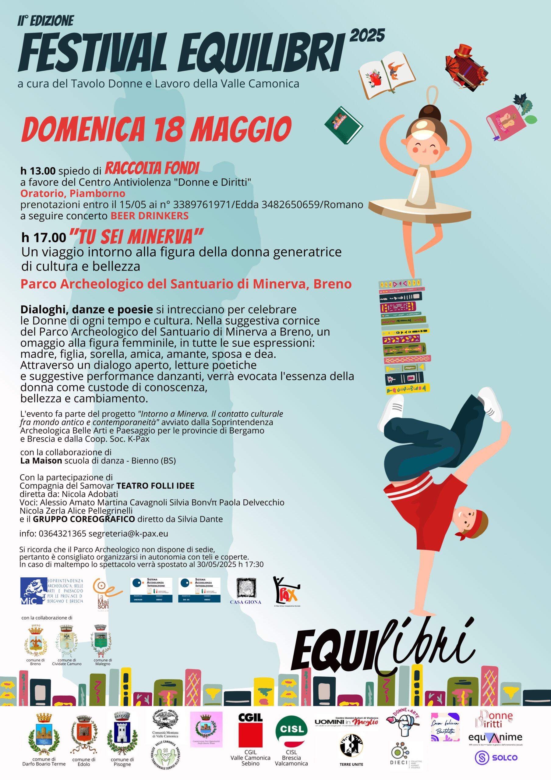 In data 18/05/2025 c/o il Parco Archeologico del Santuario di Minerva a Breno, si svolgerà uno spettacolo organizzato nell’ambito del progetto Sai Breno, dalle Cooperative K-Pax e Casa Giona, sulla figura della donna nelle varie culture, nelle sue molteplici vesti, in ogni tempo e luogo e che vedrà coinvolte alcune delle beneficiarie del Progetto.