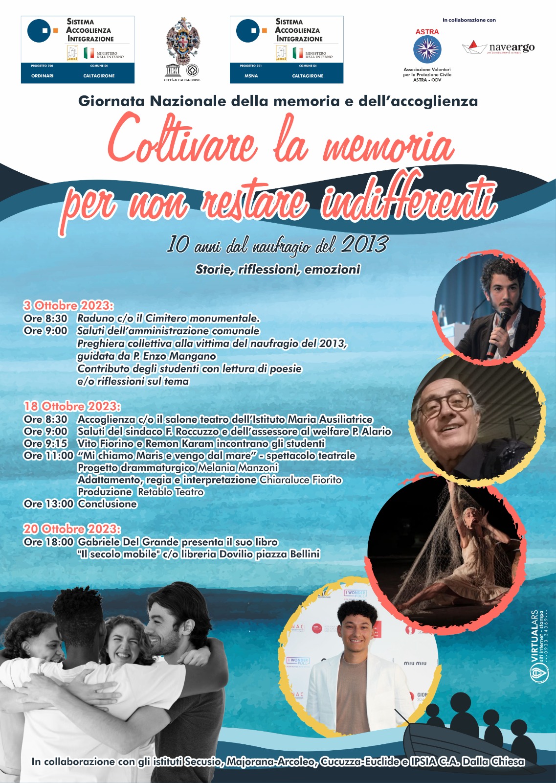 In occasione della X Giornata della Memoria e dell’Accoglienza il comune di Caltagirone, ente titolare dei progetti SAI (Sistema di Accoglienza e Integrazione) minori stranieri non accompagnati e adulti e gli enti gestori delle comunità di accoglienza SAI di Caltagirone, vogliono ricordare e commemorare tutte le vittime dell’immigrazione e promuovere iniziative di sensibilizzazione per rinnovare la memoria, la riflessione e l’impegno da parte di tutti a diffondere la cultura dell’accoglienza e promuovere il valore della vita, dell’inclusione sociale e della valorizzazione delle differenze.
