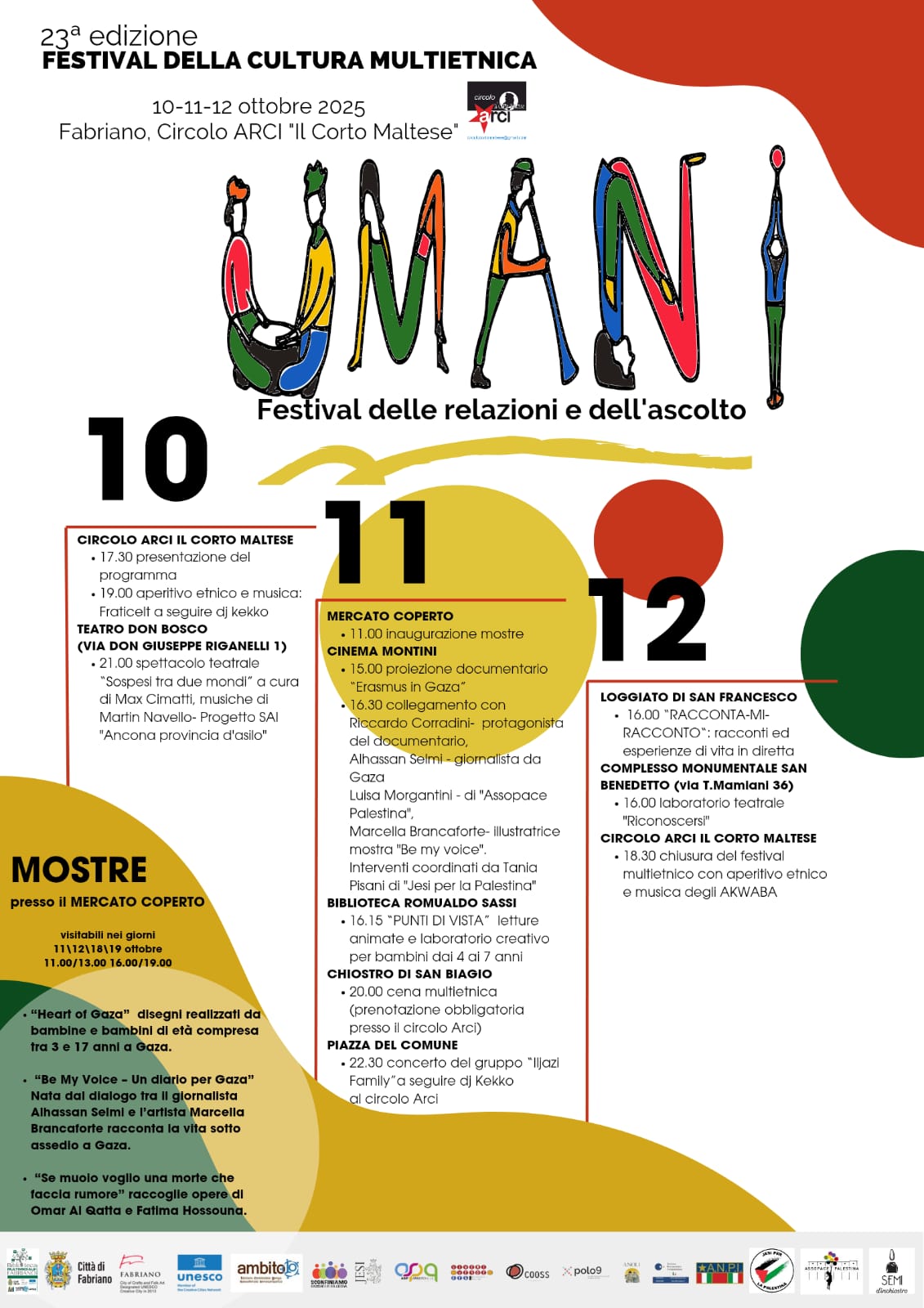 In allegato, a titolo informativo, la locandina del Festival della Cultura Multietnica di Fabriano. All’interno di tale iniziativa verrà realizzato ad opera del progetto SAI “Ancona provincia d’asilo” lo spettacolo teatrale “Sospesi tra due mondi” previsto il 10 ottobre 2025.