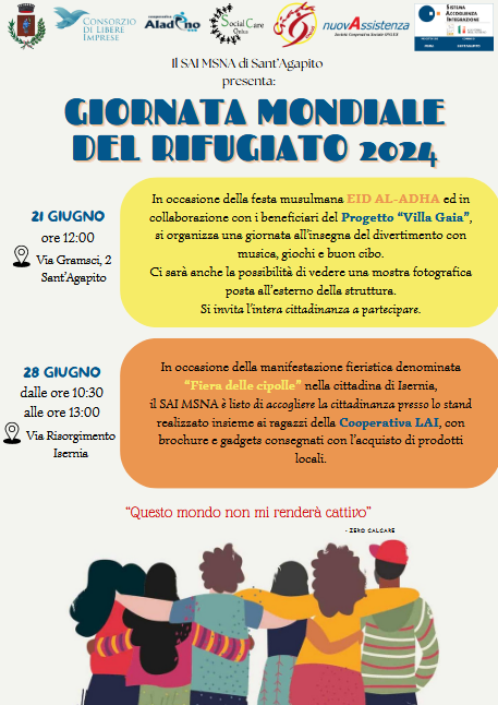 Il Comune di Sant’Agapito in occasione della Giornata Mondiale del Rifugiato ha promosso l’iniziativa di cui si allega locandina