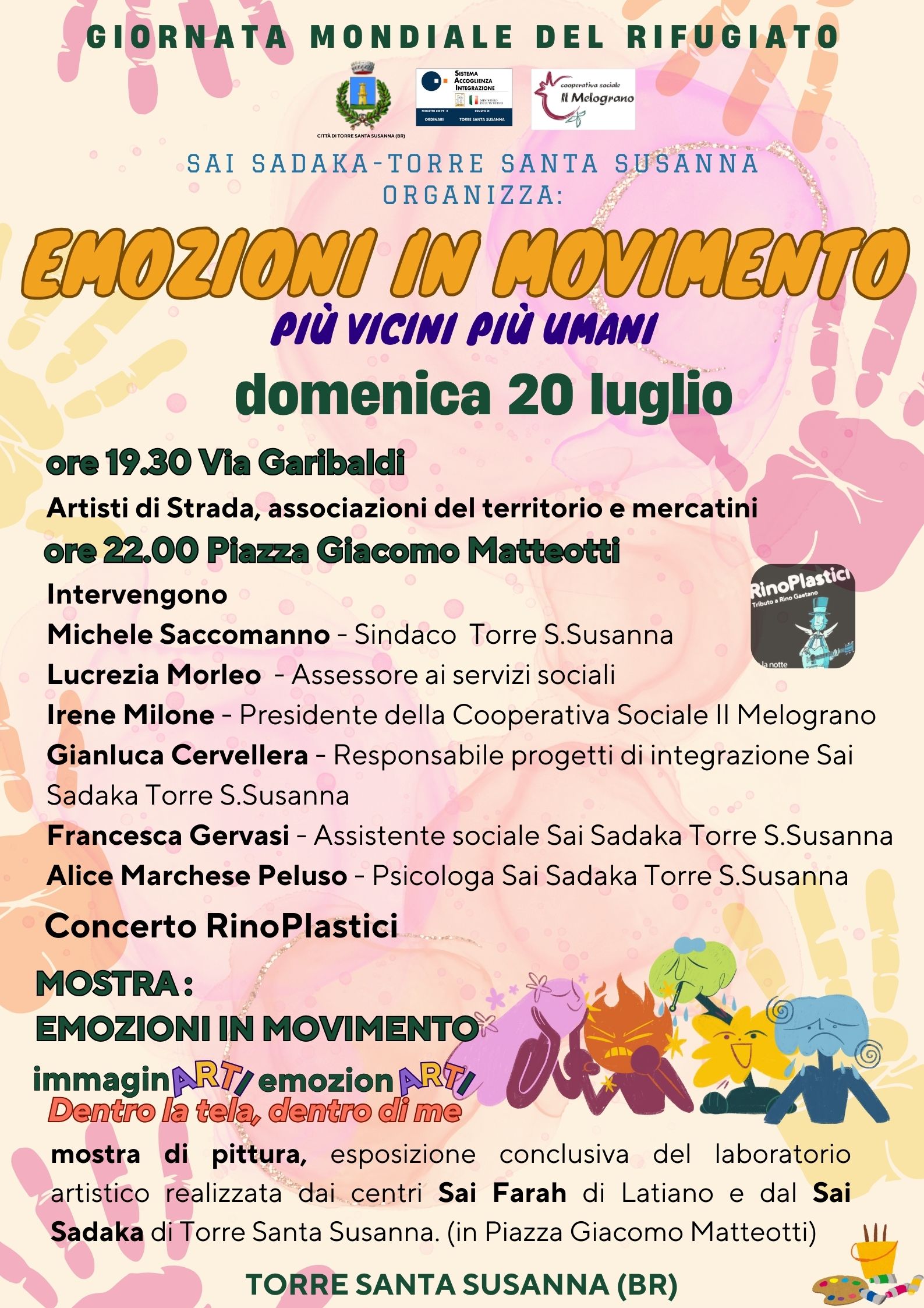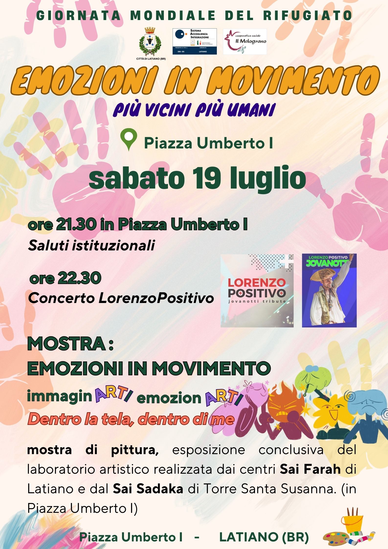In data 19 e 20 luglio 2025, in occasione della Giornata Mondiale del Rifugiato, si terrà “Emozioni in movimento: Più vicini più umani” l’evento organizzato dai centri Sai Farah di Latiano e Sai Sadaka di Torre Santa Susanna.