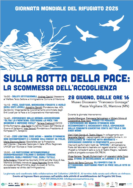 in occasione della celebrazione della Giornata Mondiale del Rifugiato 2025 pubblichiamo la locandina dell’evento che si terrà a Mantova