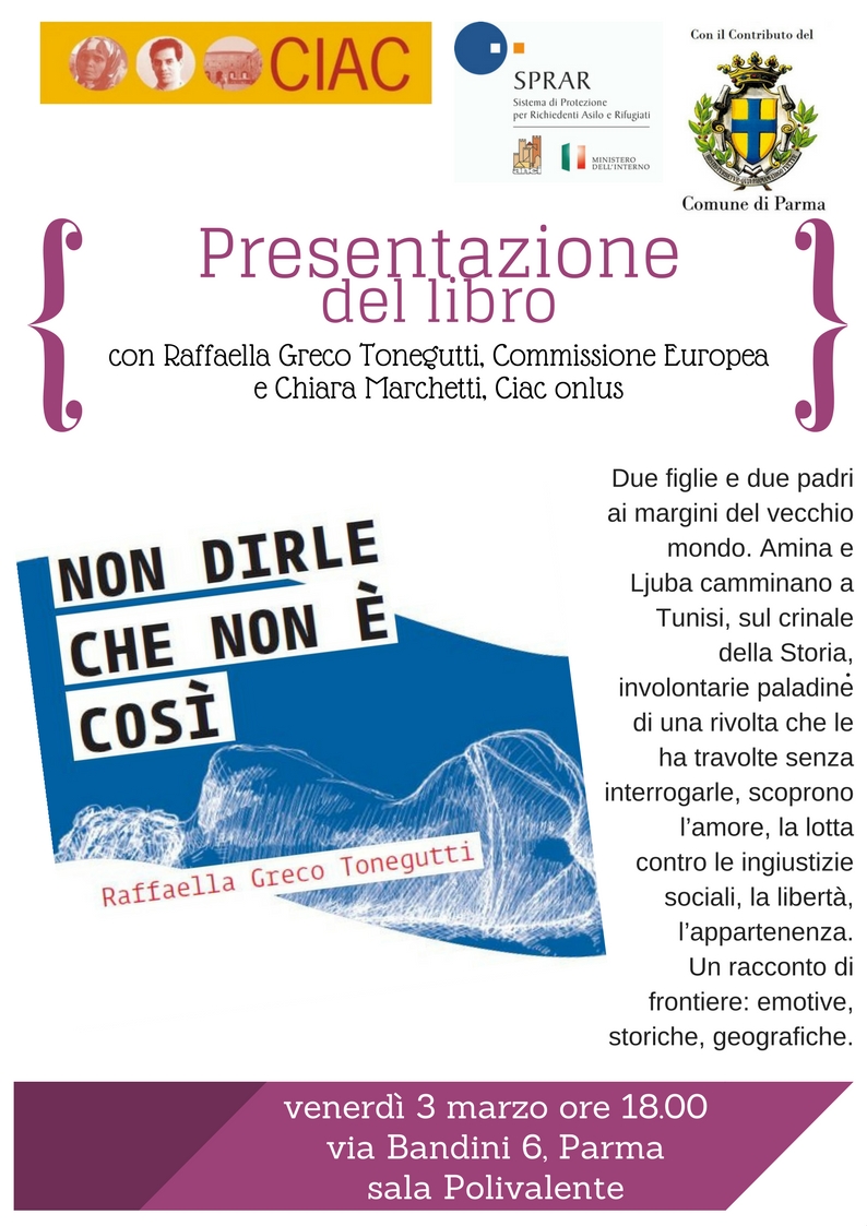 Un’iniziativa di sensibilizzazione dal progetto Sprar “Una città per l’asilo” (Comune di Parma – CIAC onlus): la presentazione del libro “Non dirle che non è così” di Raffaella Greco Tonegutti
