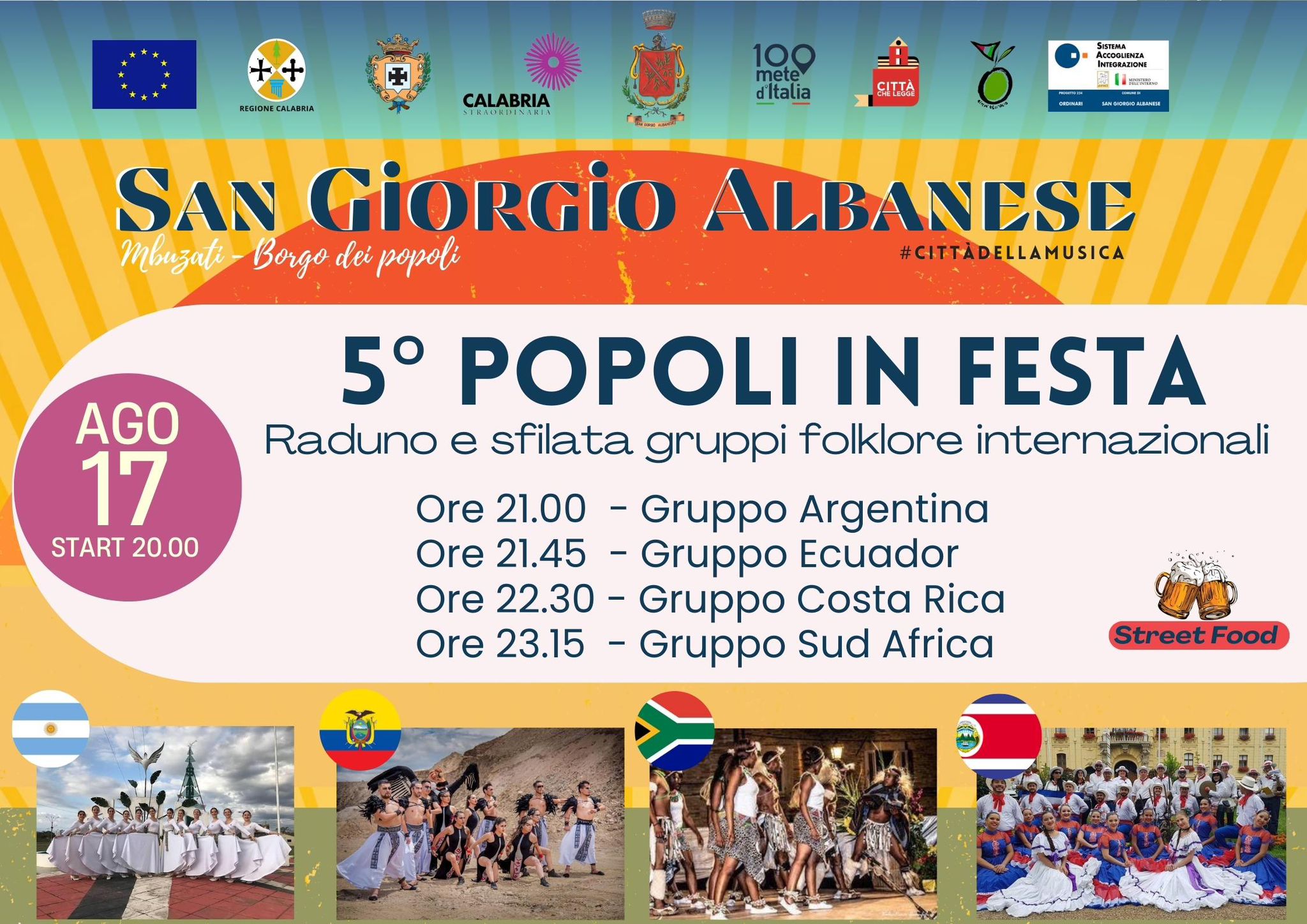 Il giorno 17 Agosto presso il Comune di San Giorgio Albanese si terrà l’evento “Popoli in festa”